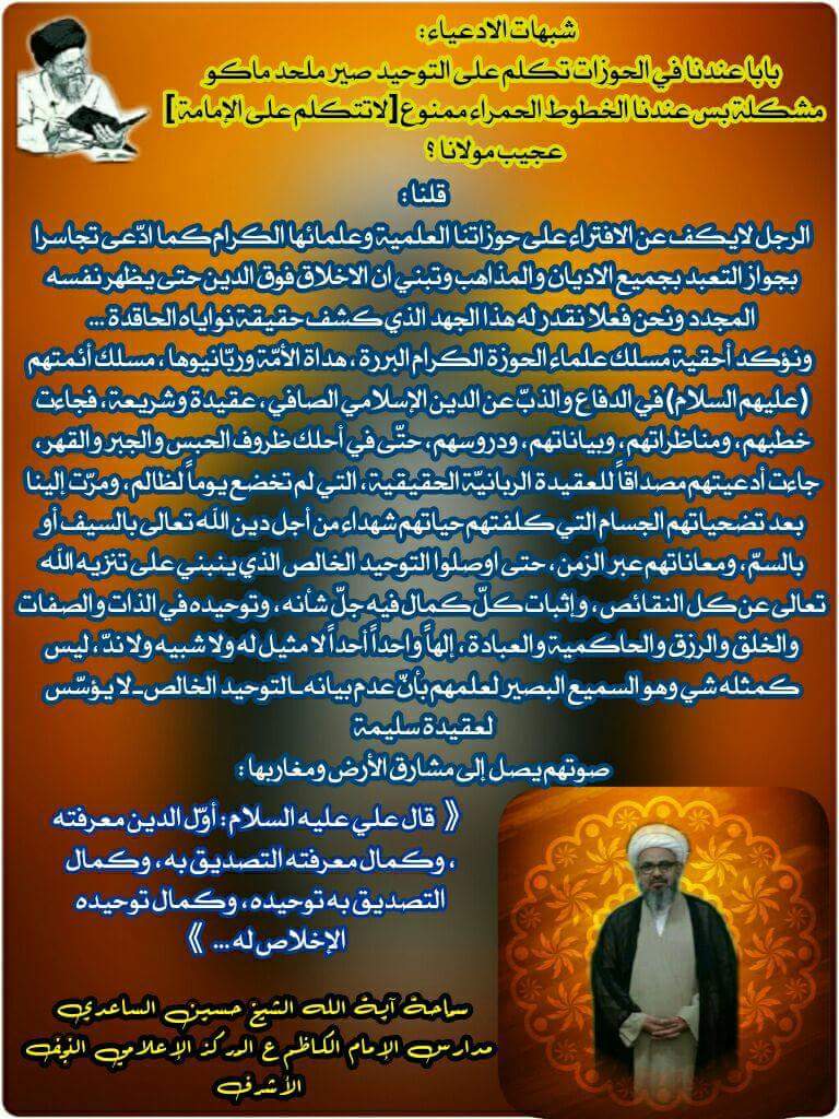 شبهة :بابا تكلم على التوحيد صير ملحد ماكو مشكلة بس عندنا الخطوط الحمراء في الحوزات لاتتكلم على الإما